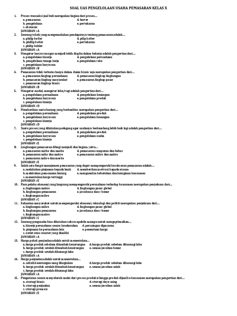 Contoh Soal Pilihan Ganda Marketing Kelas 10 Dapatkan Contoh from img.dokumen.tips We did not find results for: Check spelling or type a new query. Kunci jawaban marketing kelas 10. Maybe you would like to learn more about one of these?