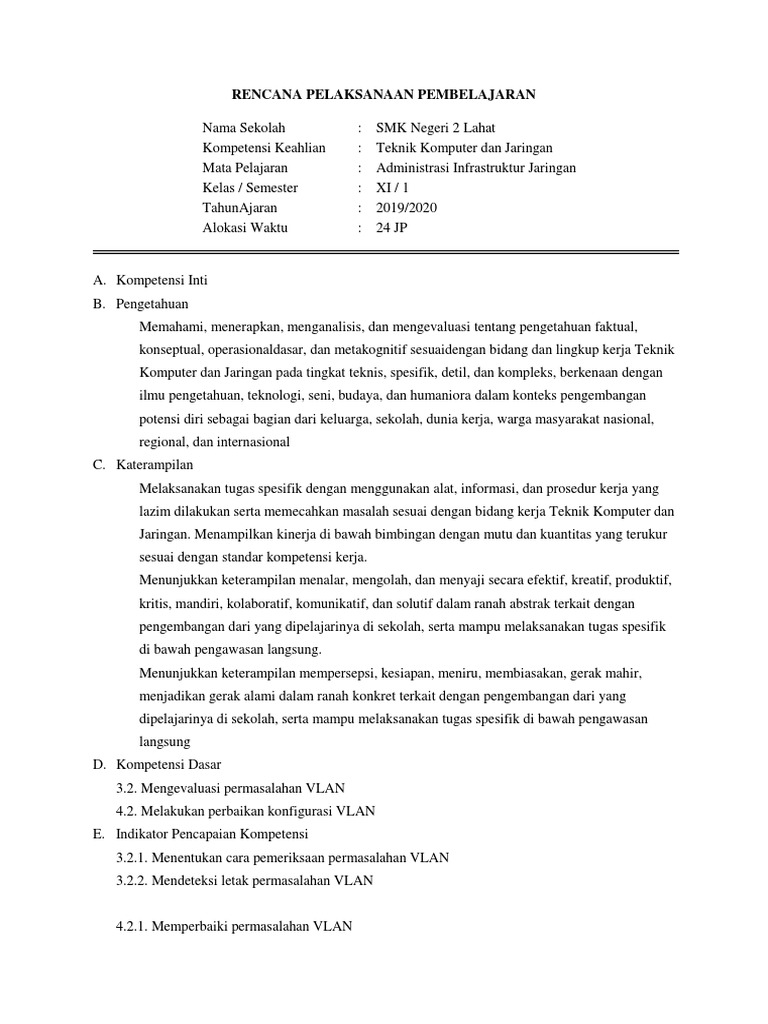 Rpp Aij 1 Lembar Kelas 12 Firewall Pdf from imgv2-1-f.scribdassets.com 1 x pertemuan (1 x 45 menit). 4) bersama dengan siswa, guru memberikan penguatan pemahaman kepada siswa. Buku siswa bahasa inggris kelas xi. Rpp k13 sma kelas xi yaitu salah satu komponen perangkat pembelajaran yang memiliki fungsi untuk mengarahkan kegiatan pembelajaran para siswa jenjang sma. Rpp fiqih kelas x kurikulum 2013 te. Soal aij kelas xi tkjfull description. Smk jayawisata surakarta mata pelajaran : Administrasi infrastruktur jaringan kelas/semester :